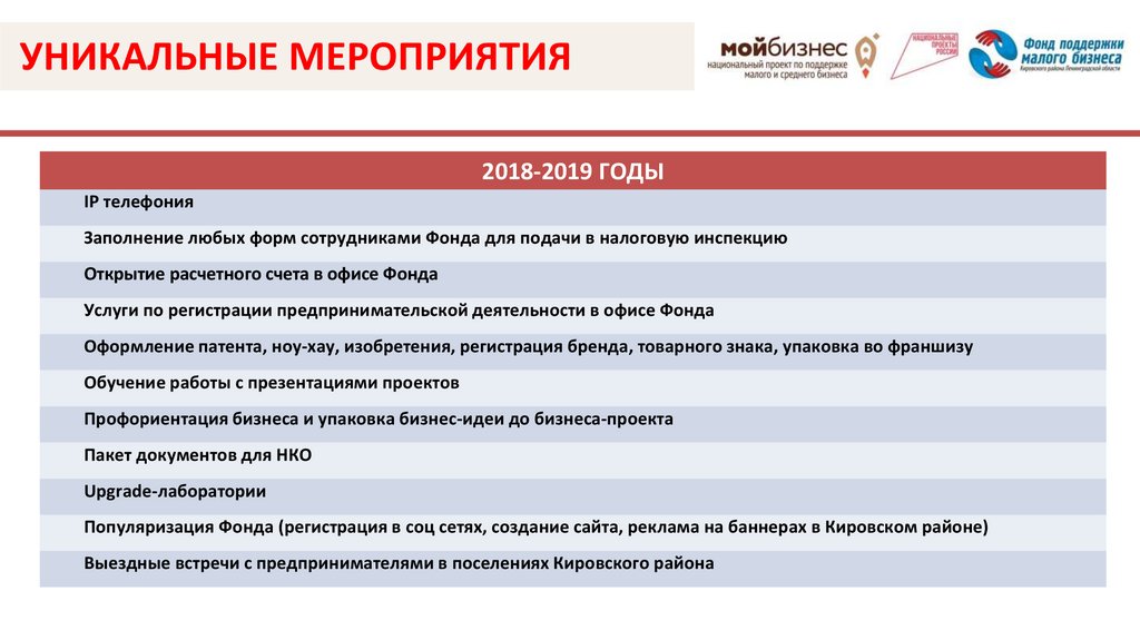 УНИКАЛЬНЫЕ МЕРОПРИЯТИЯПопуляризация Фонда ПМБ КР ЛО