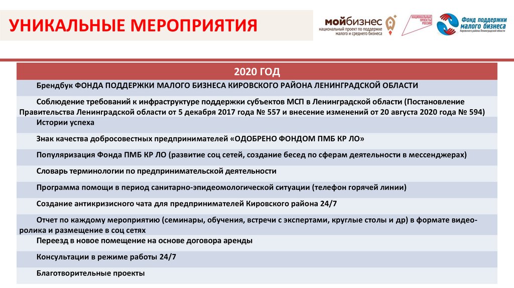 УНИКАЛЬНЫЕ МЕРОПРИЯТИЯБрендбук ФОНДА ПОДДЕРЖКИ МАЛОГО БИЗНЕСА КИРОВСКОГО РАЙОНА