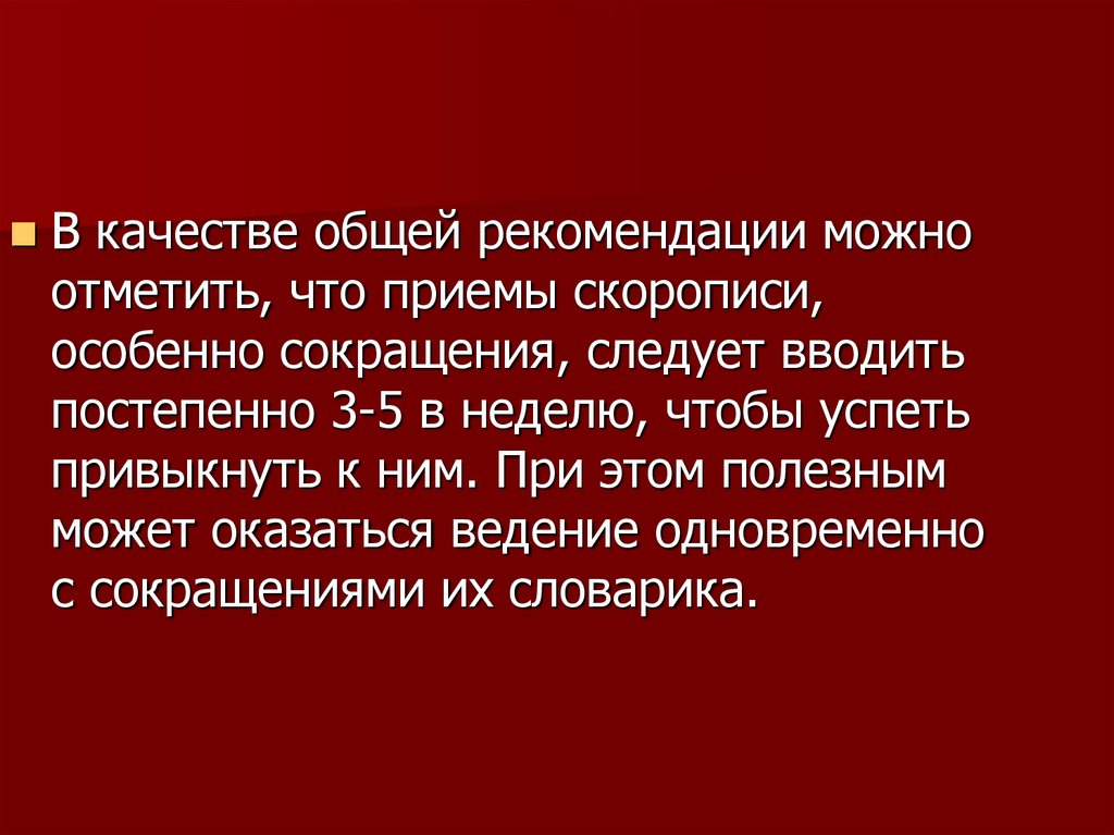 В качестве общей рекомендации можноотметить, что приемы скорописи,