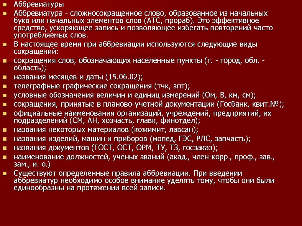 аббревиатур необходимо особое внимание уделять тому, чтобы они были