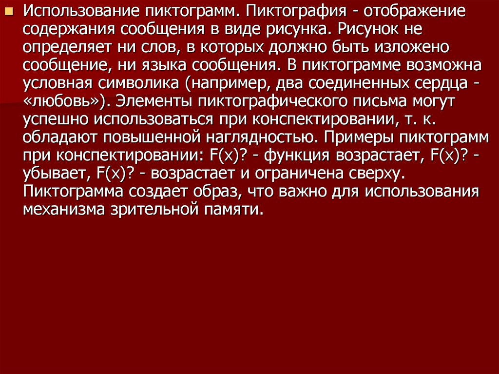 текста лекции слово в слово, а запись смысла, сути лекции,