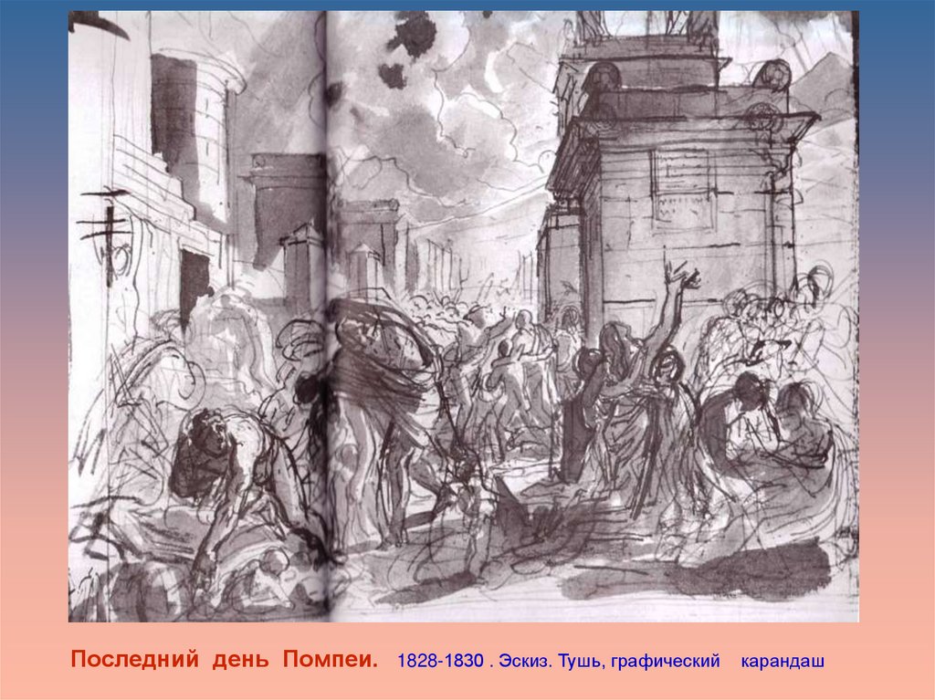 Последний день Помпеи.1828-1830 . Эскиз. Тушь, графический