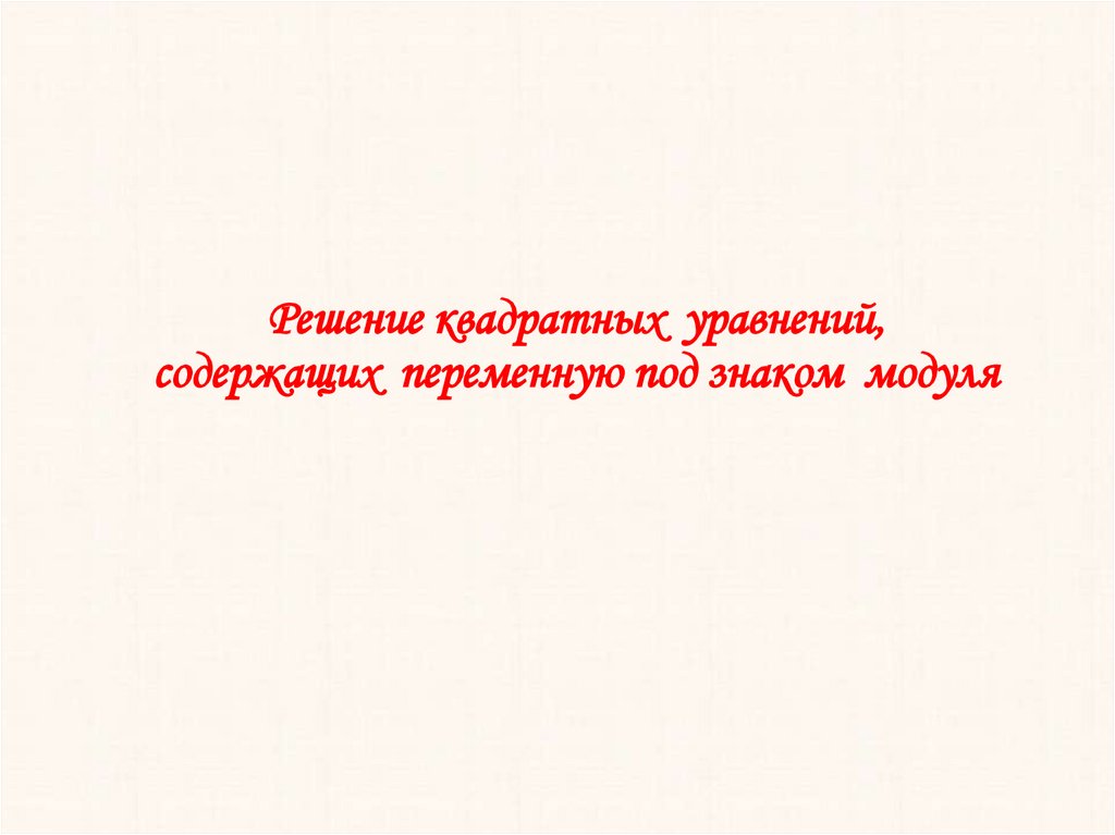 1. Решение квадратных уравнений, содержащих переменную под знаком модуля