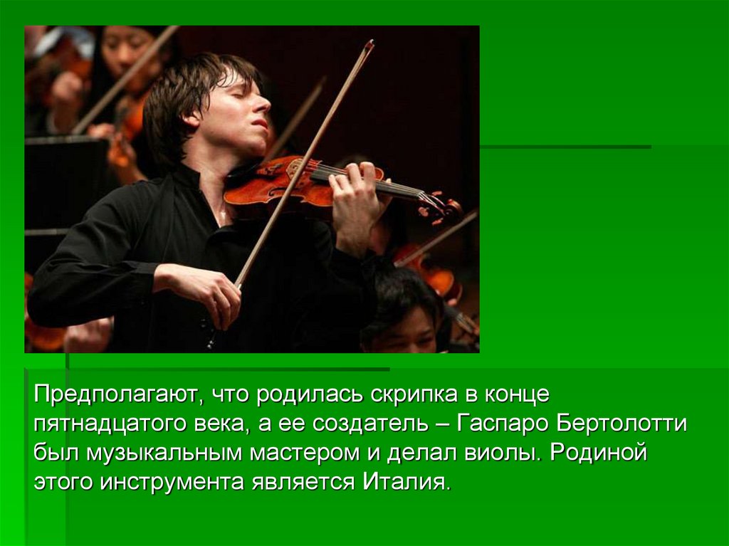 Предполагают, что родилась скрипка в концепятнадцатого века, а ее создатель – Гаспаро Бертолотти