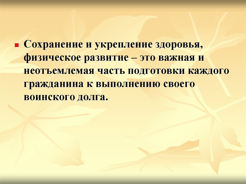 Здоровый образ жизни. Сохранение и укрепление здоровья — важная часть подготовки юноши допризывного возраста