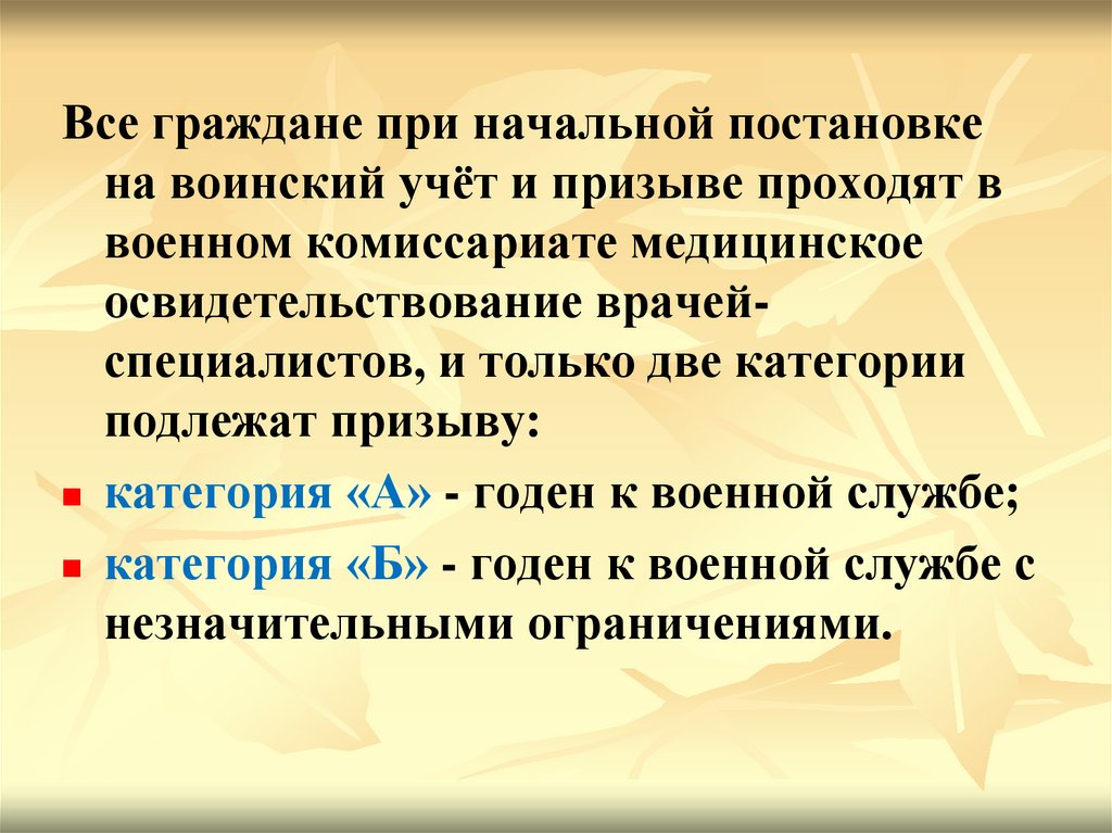 Все граждане при начальной постановкена воинский учёт и призыве проходят в