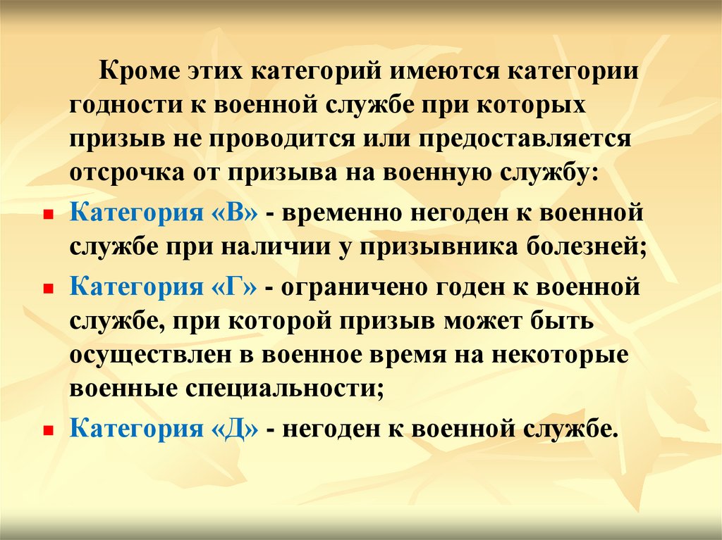 Кроме этих категорий имеются категориигодности к военной службе при которых