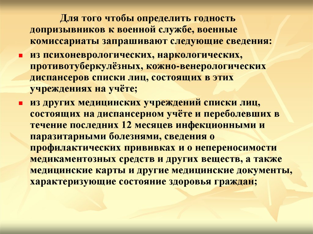 Для того чтобы определить годностьдопризывников к военной службе, военные
