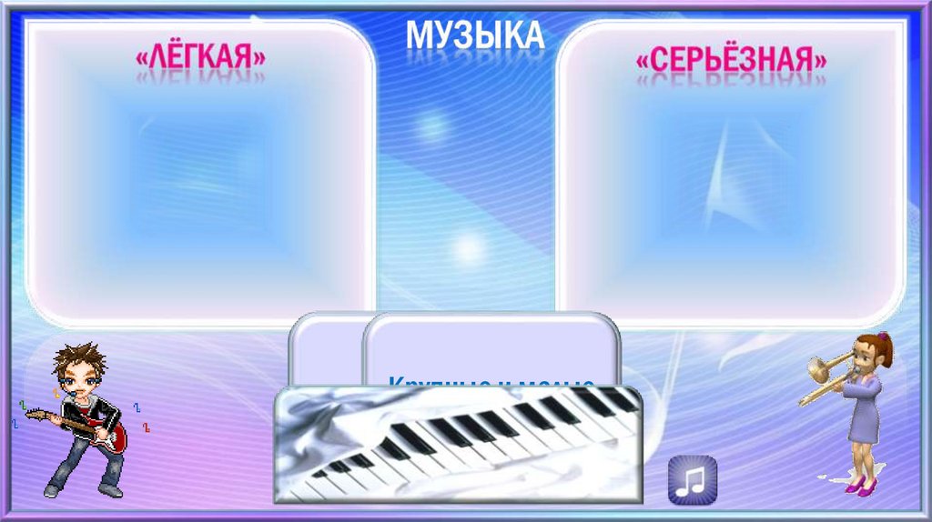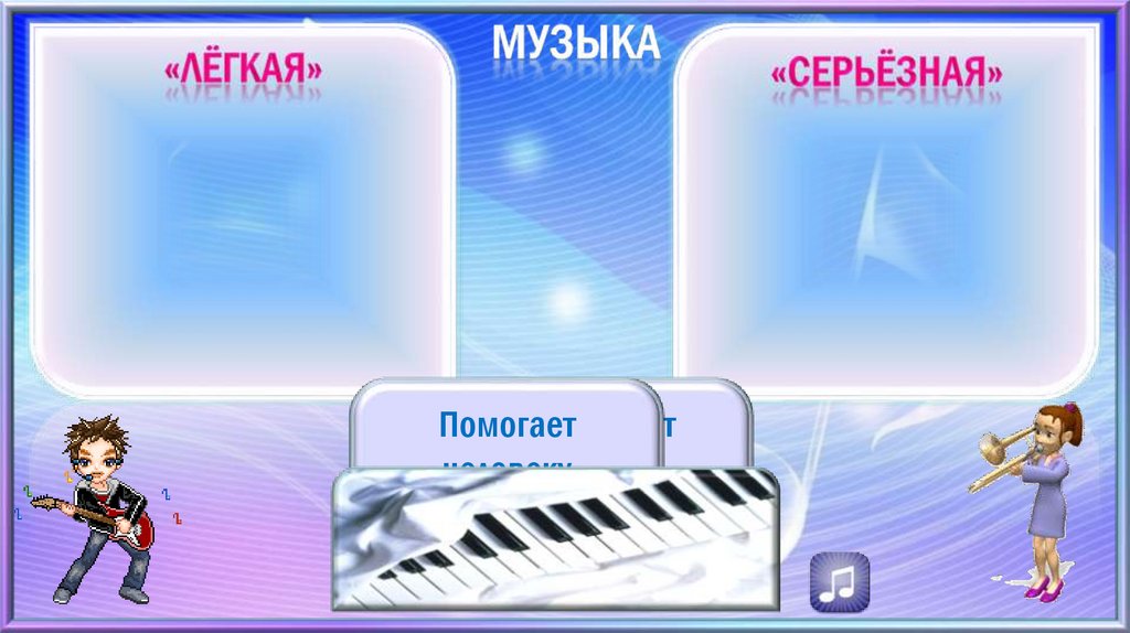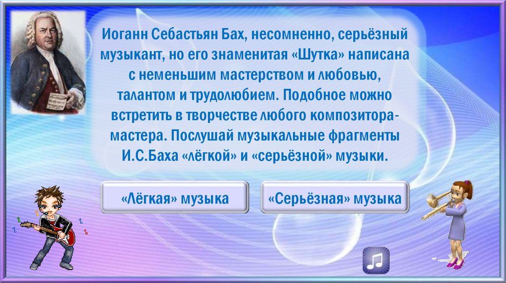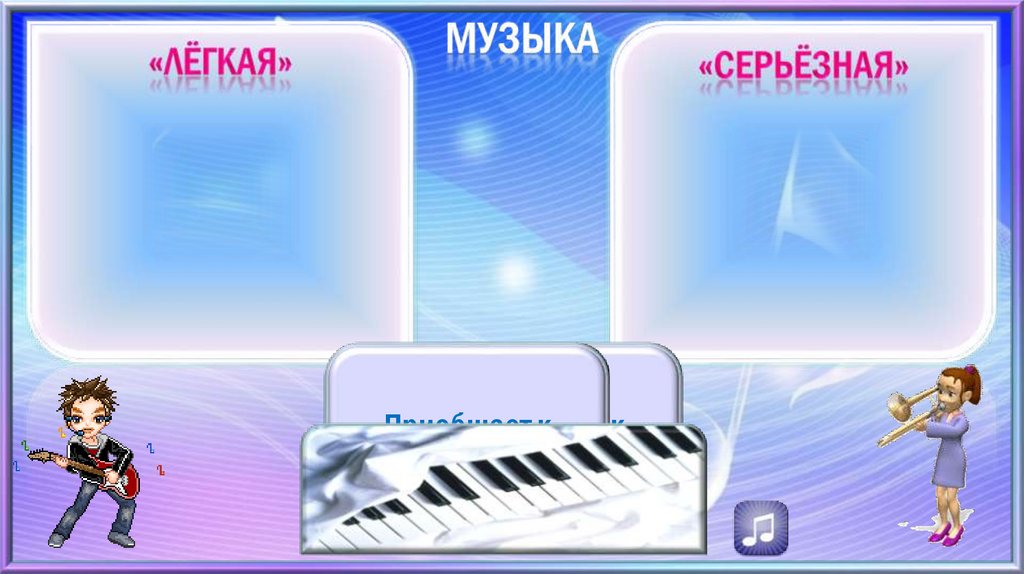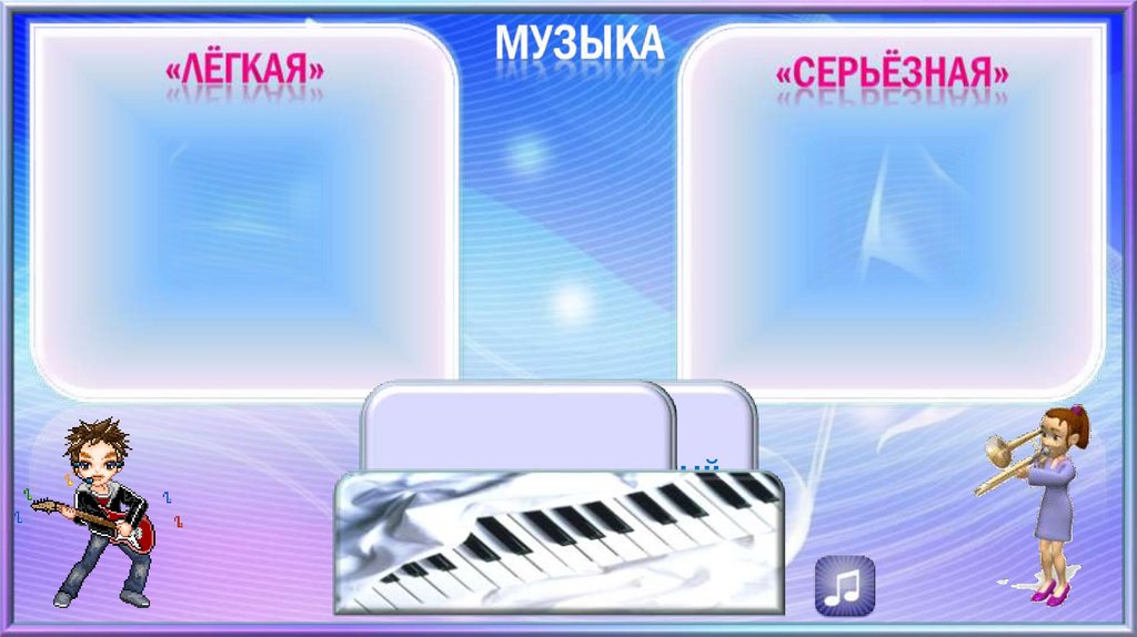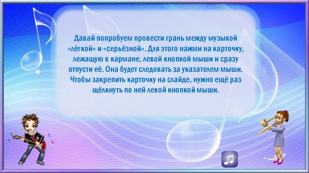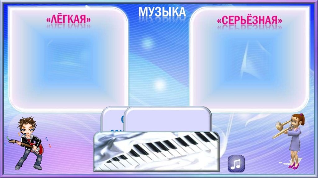 Давай попробуем провести грань между музыкой«лёгкой» и «серьёзной». Для этого нажми на карточку,