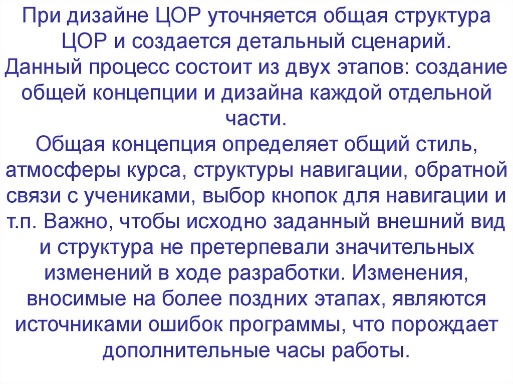 При дизайне ЦОР уточняется общая структураЦОР и создается детальный сценарий.