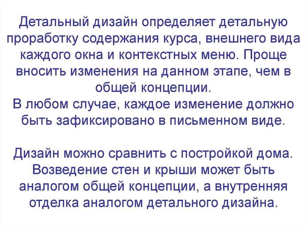 Детальный дизайн определяет детальнуюпроработку содержания курса, внешнего вида