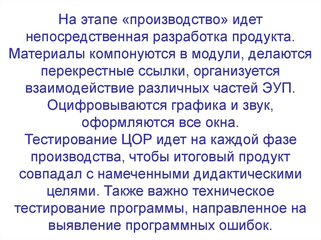 На этапе «производство» идетнепосредственная разработка продукта.