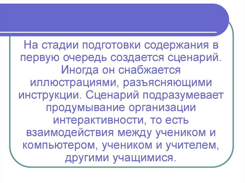 На стадии подготовки содержания впервую очередь создается сценарий.