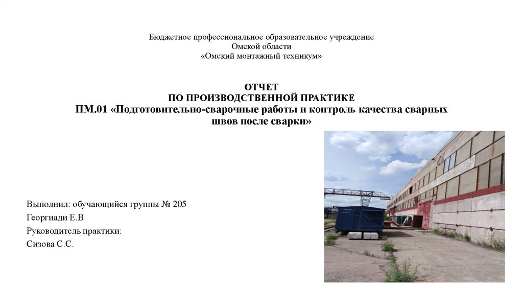 производства по ПМ.01 «Подготовительно-сварочные работы и