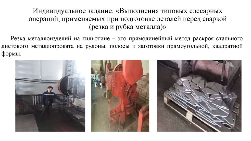 Индивидуальное задание: «Выполнения типовых слесарныхопераций, применяемых при подготовке деталей перед сваркой