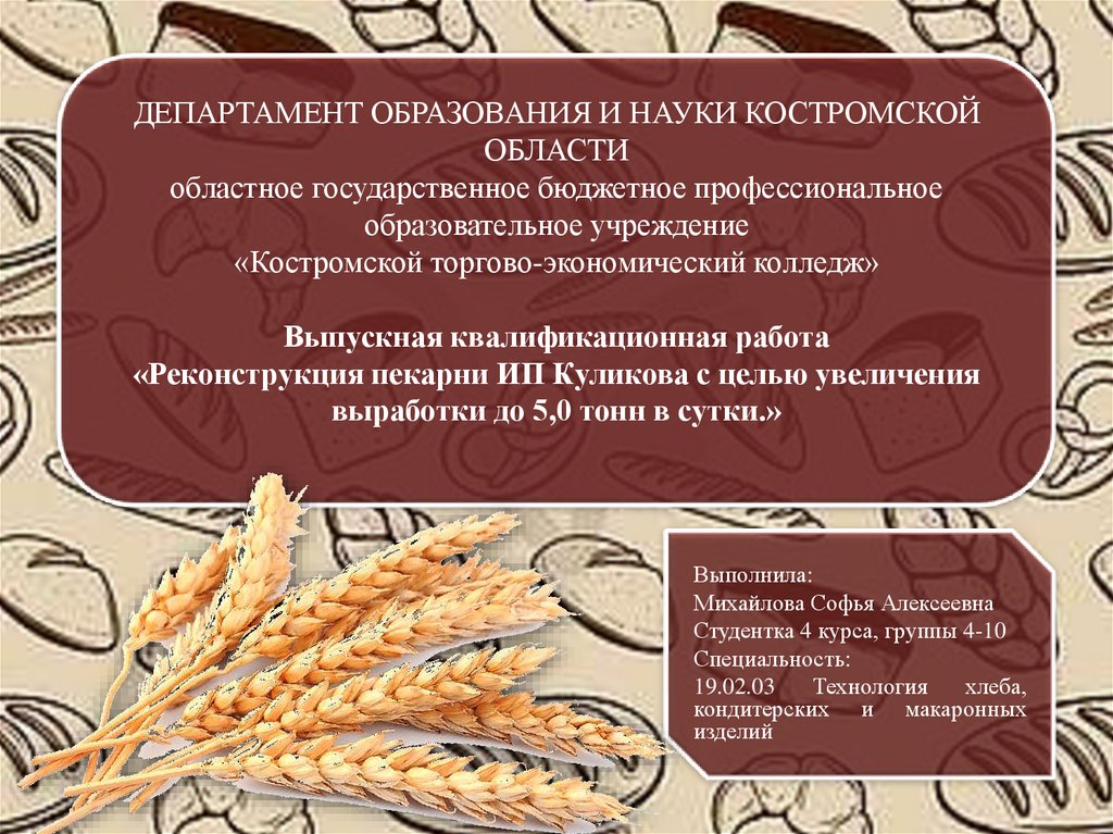«Реконструкция пекарни ИП Куликова с целью увеличения выработки до 5,0 тонн в сутки.»
