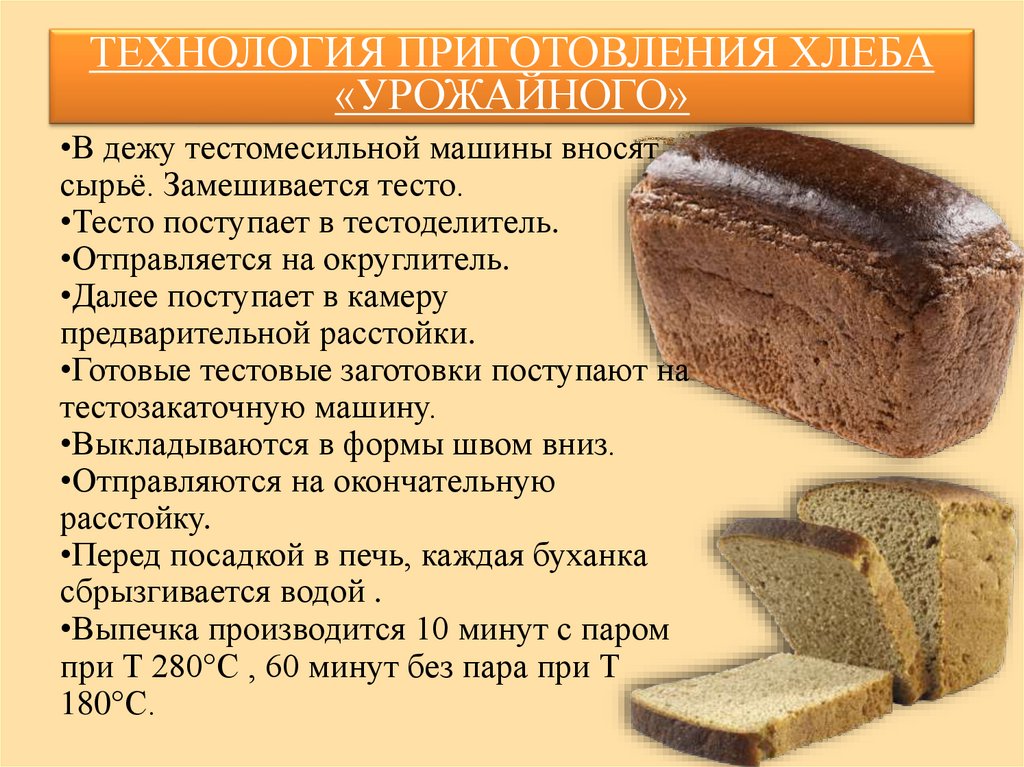 ТЕХНОЛОГИЯ ПРИГОТОВЛЕНИЯ ХЛЕБА«УРОЖАЙНОГО»