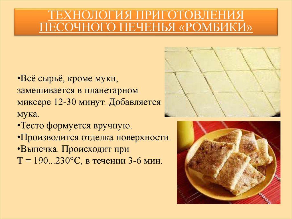 ТЕХНОЛОГИЯ ПРИГОТОВЛЕНИЯПЕСОЧНОГО ПЕЧЕНЬЯ «РОМБИКИ»
