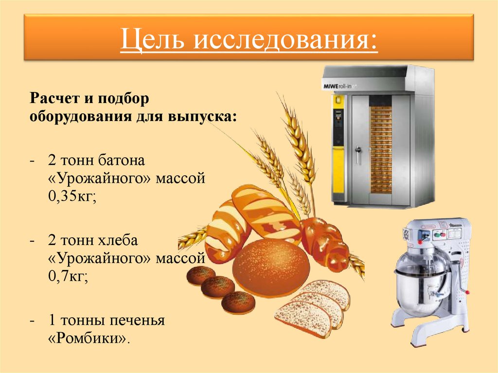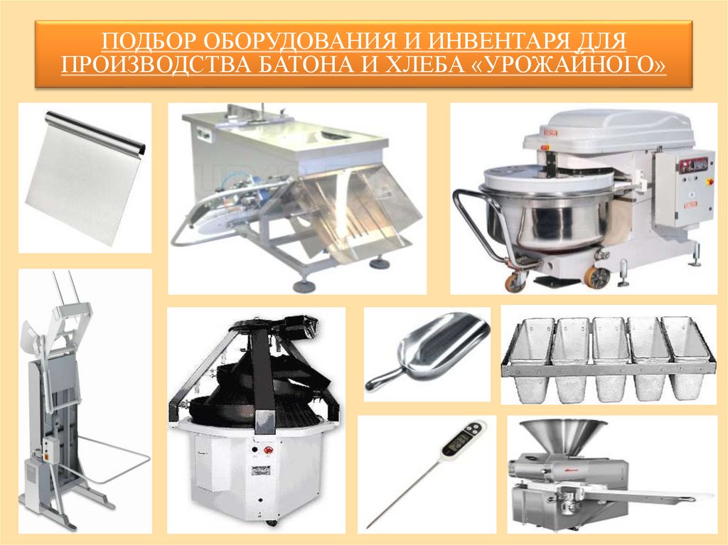 ПОДБОР ОБОРУДОВАНИЯ И ИНВЕНТАРЯ ДЛЯПРОИЗВОДСТВА БАТОНА И ХЛЕБА «УРОЖАЙНОГО»