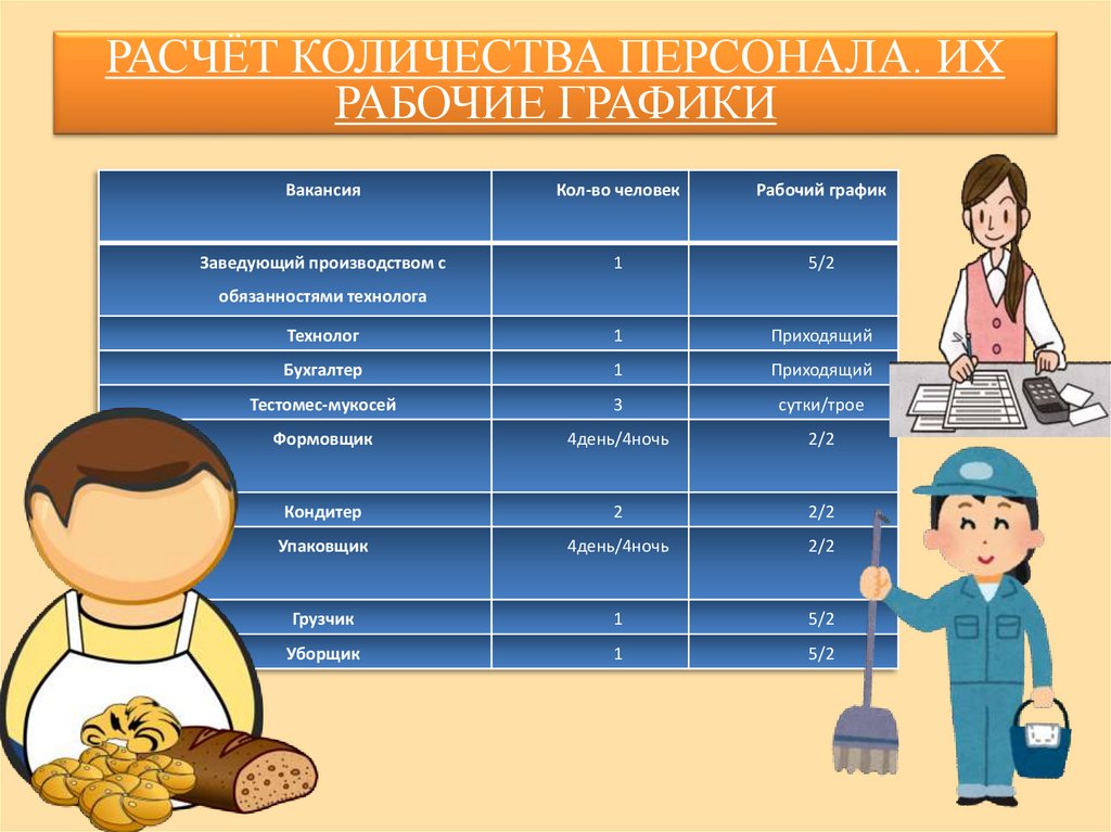 РАСЧЁТ КОЛИЧЕСТВА ПЕРСОНАЛА. ИХРАБОЧИЕ ГРАФИКИ