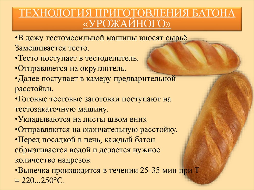 ТЕХНОЛОГИЯ ПРИГОТОВЛЕНИЯ БАТОНА«УРОЖАЙНОГО»