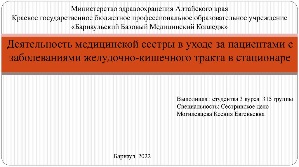 Министерство здравоохранения Алтайского краяКраевое государственное бюджетное профессиональное образовательное учреждение