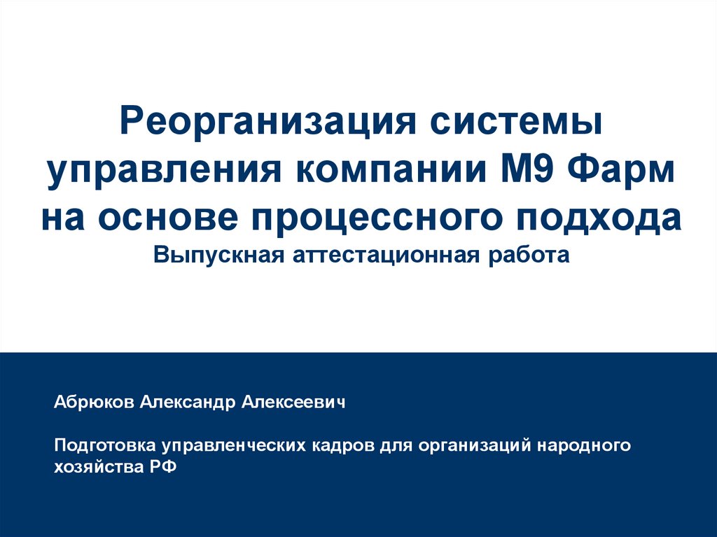1. Реорганизация системы управления компании М9 Фарм на основе процессного подхода Выпускная аттестационная работа