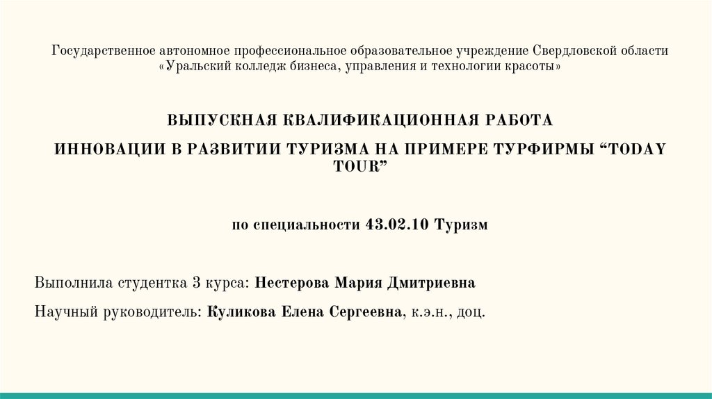 Государственное автономное профессиональное образовательное учреждение Свердловской области«Уральский колледж бизнеса, управления и технологии красоты»