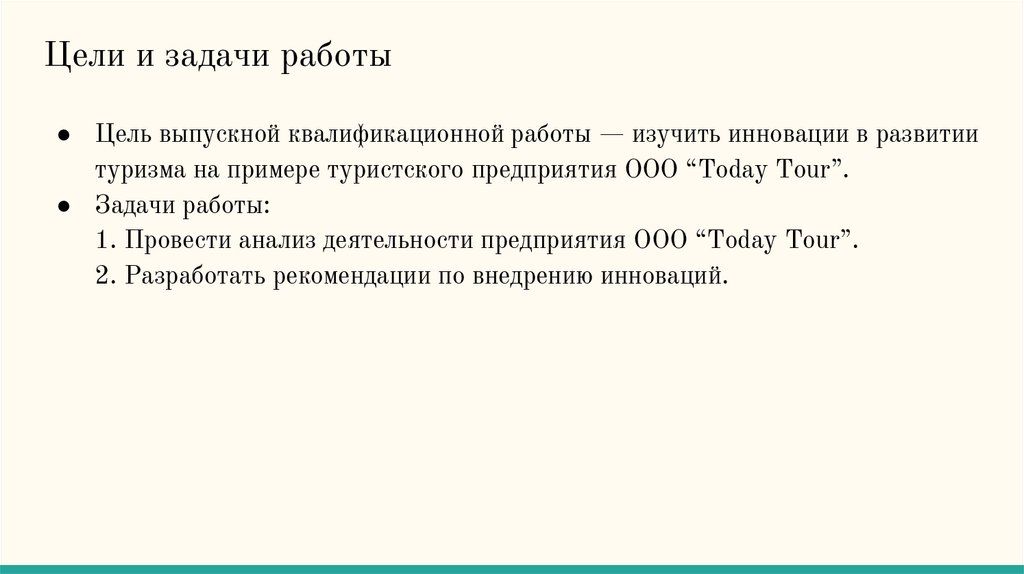 Цели и задачи работы● Цель выпускной квалификационной работы — изучить инновации в развитии