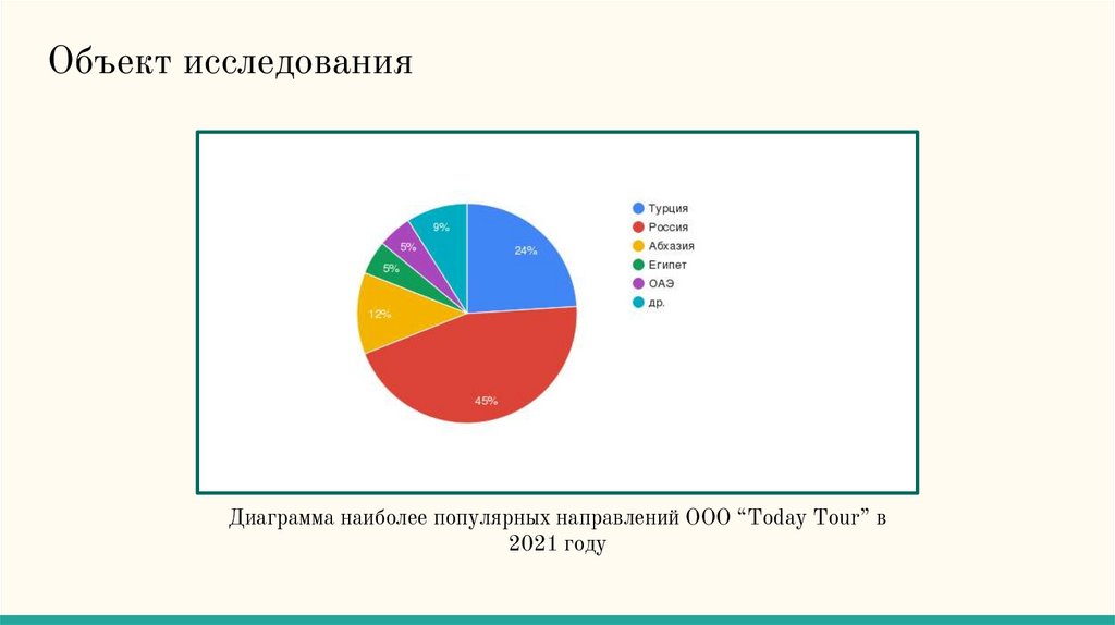 Объект исследованияДиаграмма наиболее популярных направлений ООО “Today Tour” в