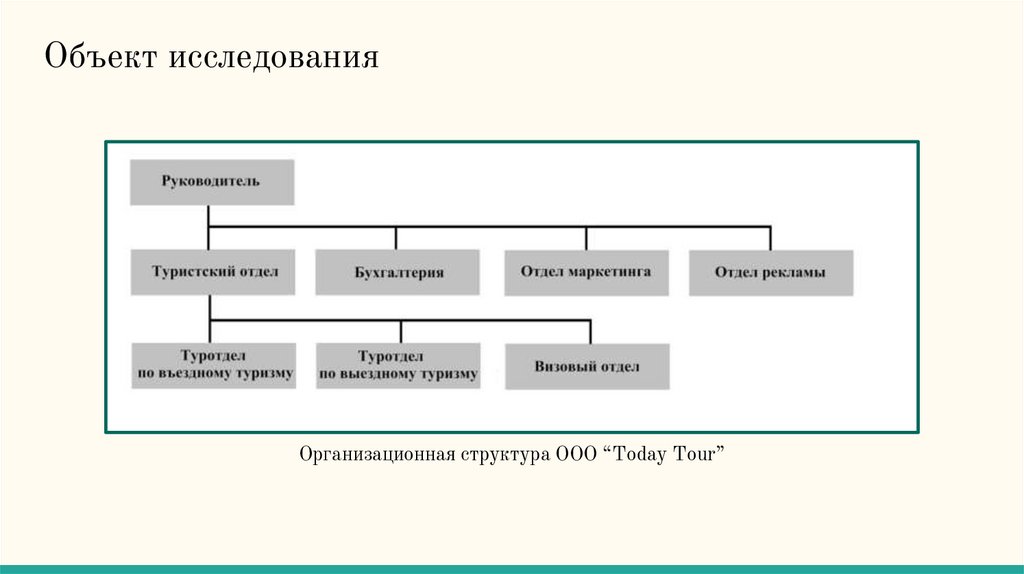 Объект исследованияОрганизационная структура ООО “Today Tour”