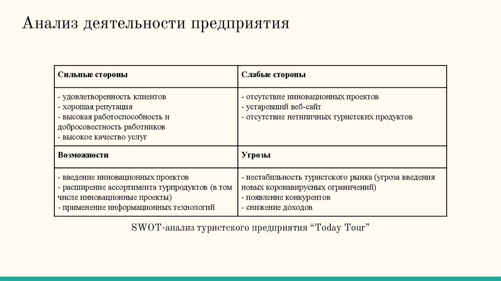 SWOT-анализ туристского предприятия “Today Tour”