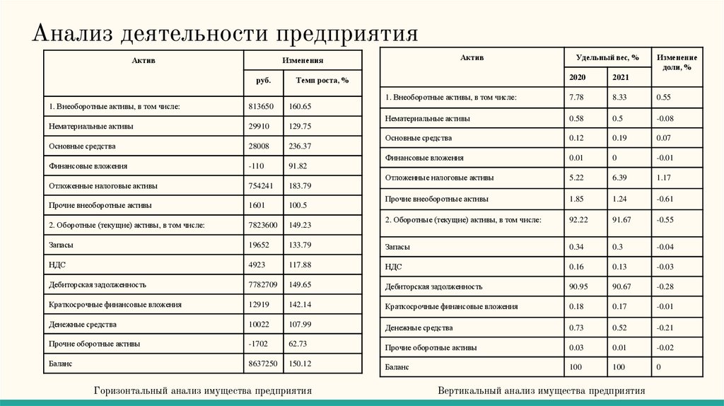 Вертикальный анализ имущества предприятия