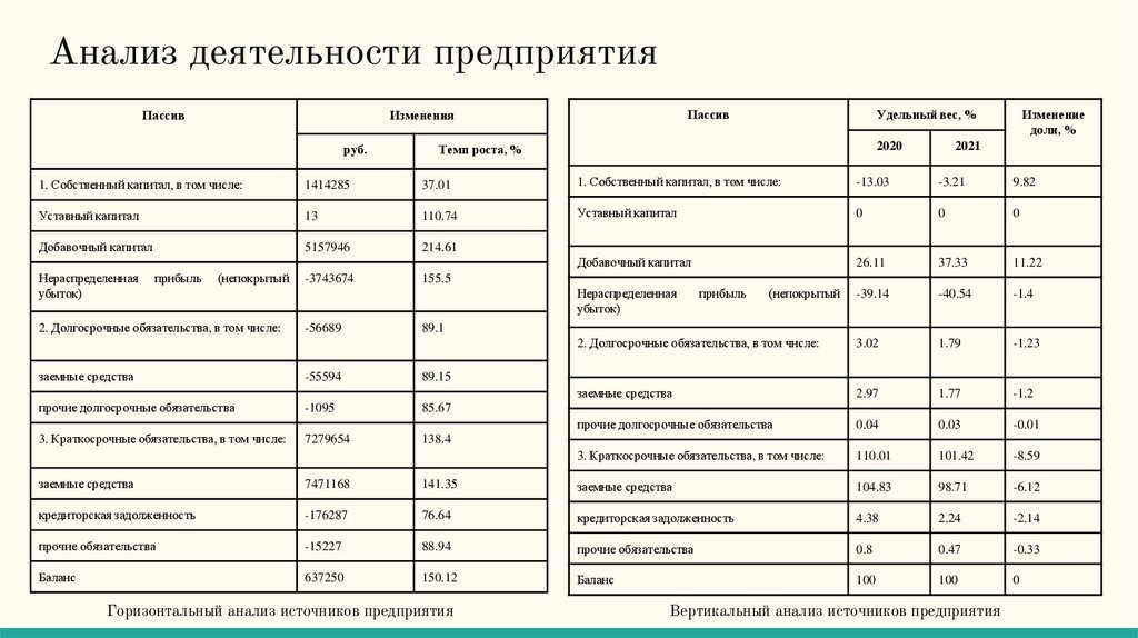 Анализ деятельности предприятияПассив