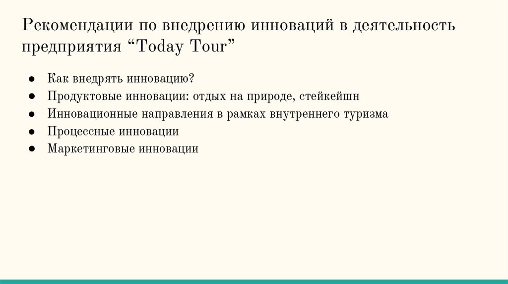 Рекомендации по внедрению инноваций в деятельностьпредприятия “Today Tour”