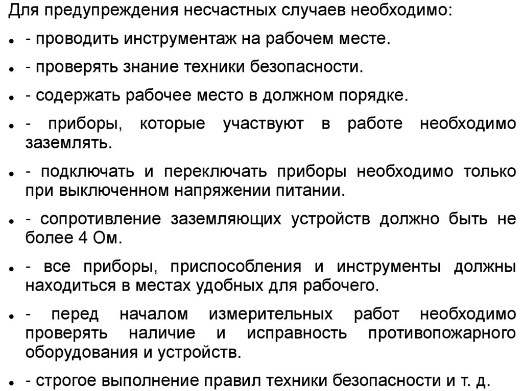 Для предупреждения несчастных случаев необходимо:- проводить инструментаж на рабочем месте.