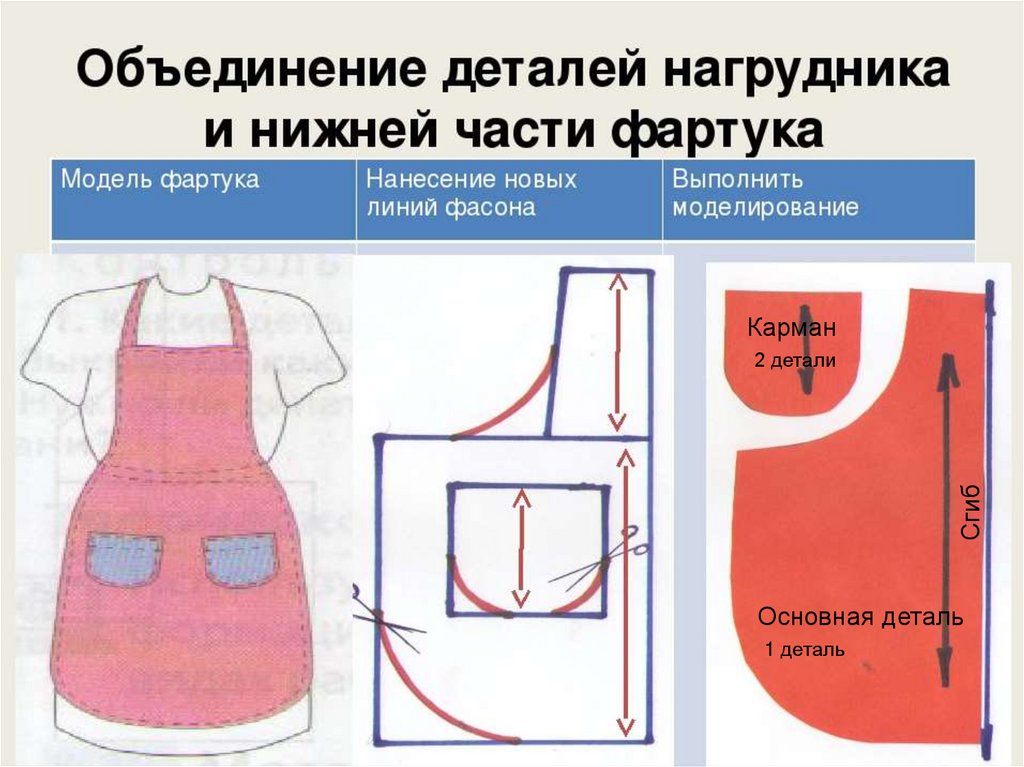 15. Задание: 1.подберите карман и нагрудник к нижней части фартука, подходящие по форме