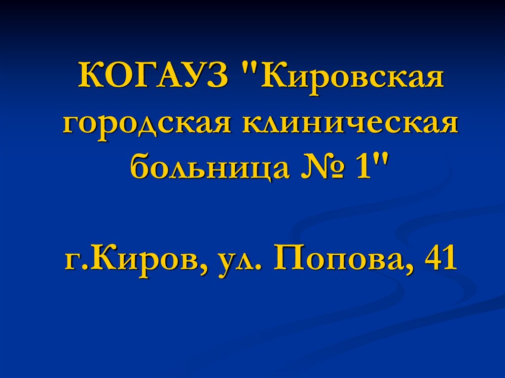 1. КОГАУЗ "Кировская городская клиническая больница № 1" г.Киров, ул. Попова, 41