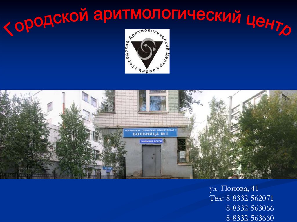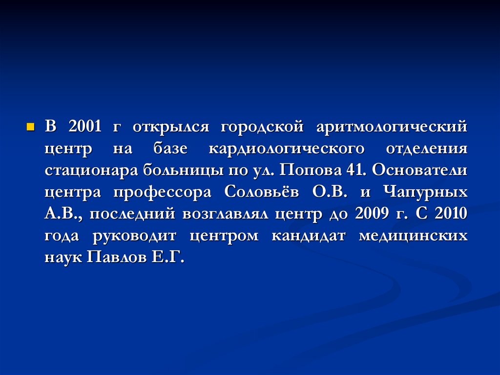 В 2001 г открылся городской аритмологическийцентр на базе кардиологического отделения