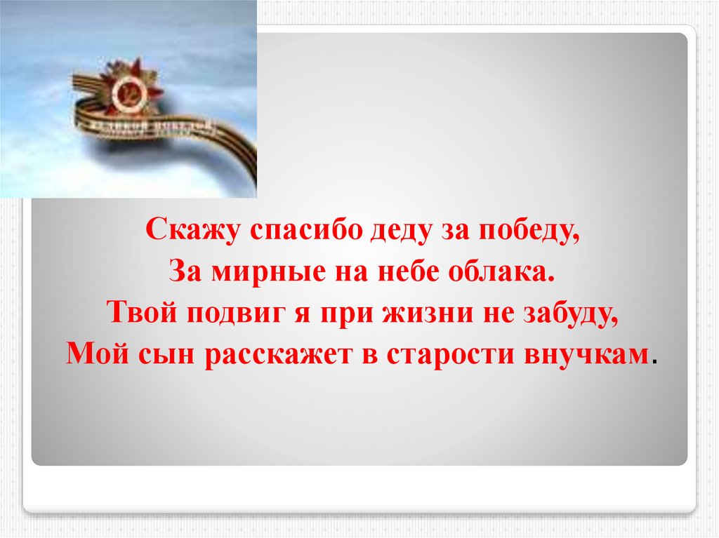 Скажу спасибо деду за победу,За мирные на небе облака.
