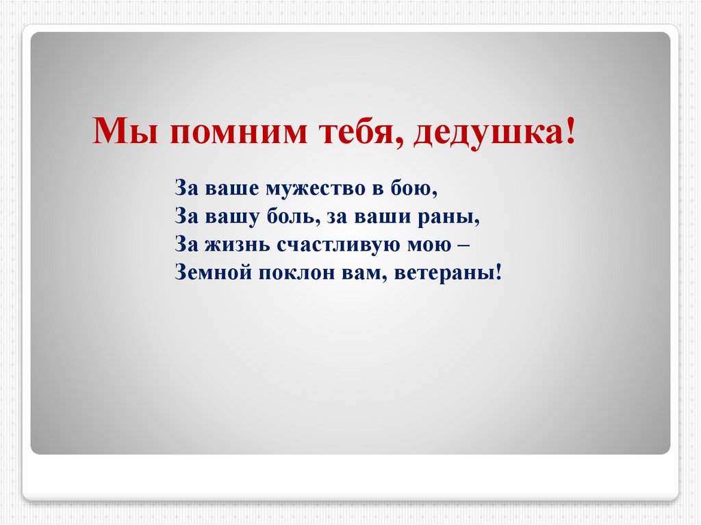 Мы помним тебя, дедушка!За ваше мужество в бою,