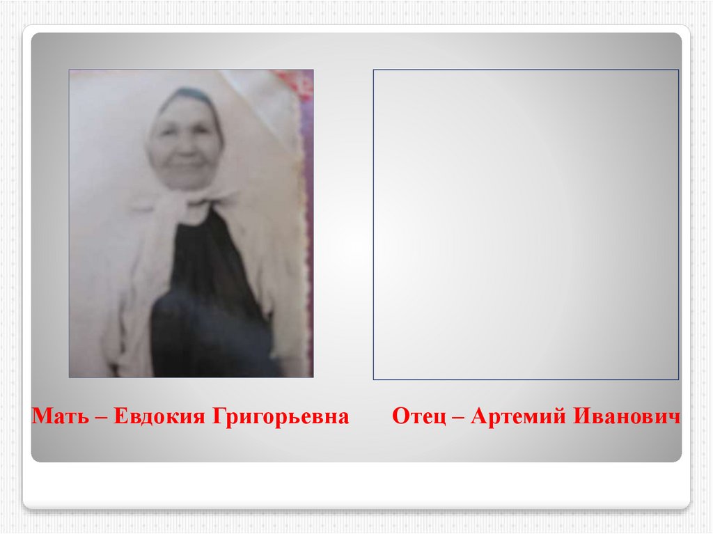 Мать – Евдокия ГригорьевнаОтец – Артемий Иванович