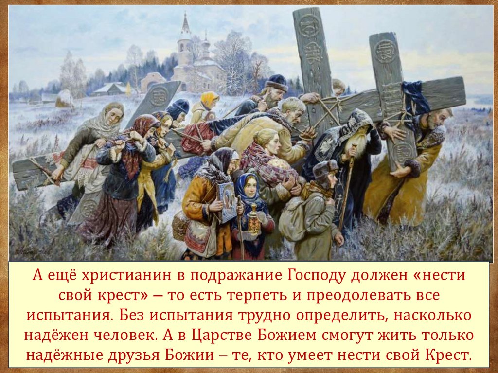 А ещё христианин в подражание Господу должен «нестисвой крест» – то есть терпеть и преодолевать все
