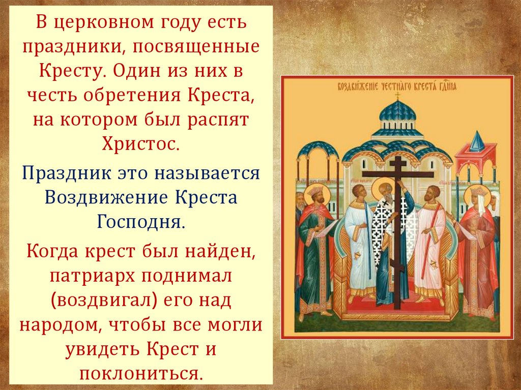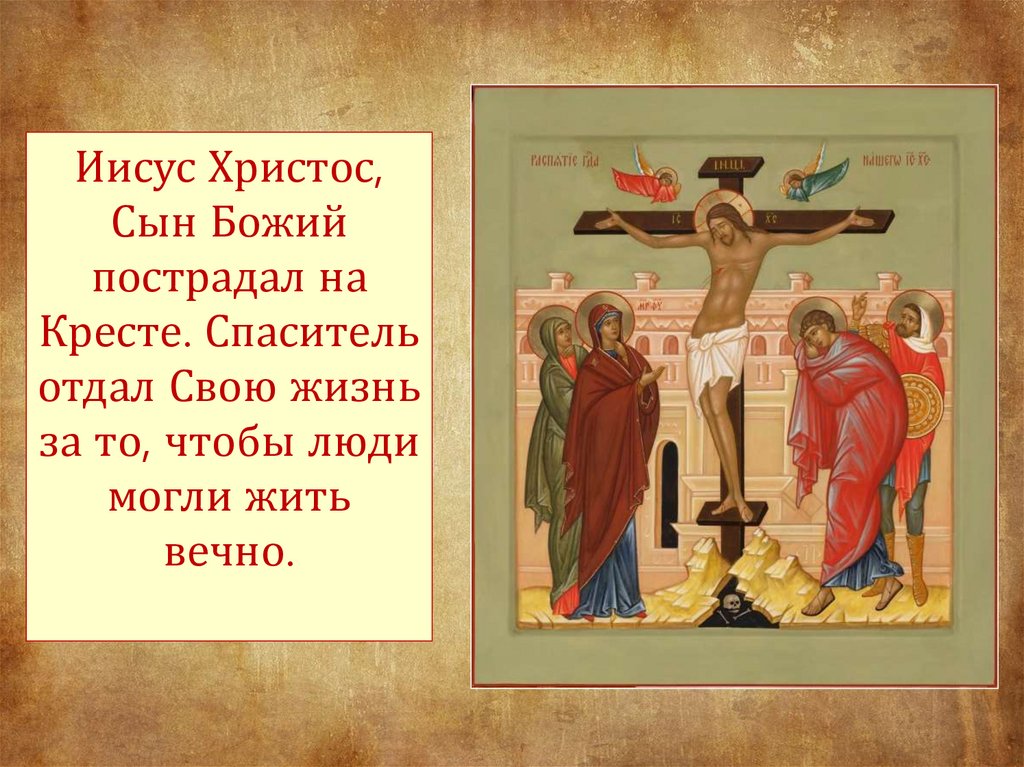 Восьмиконечный Крест – у него наклонено подножие – внапоминание о том, что распятый справа от Христа разбойник покаялся и