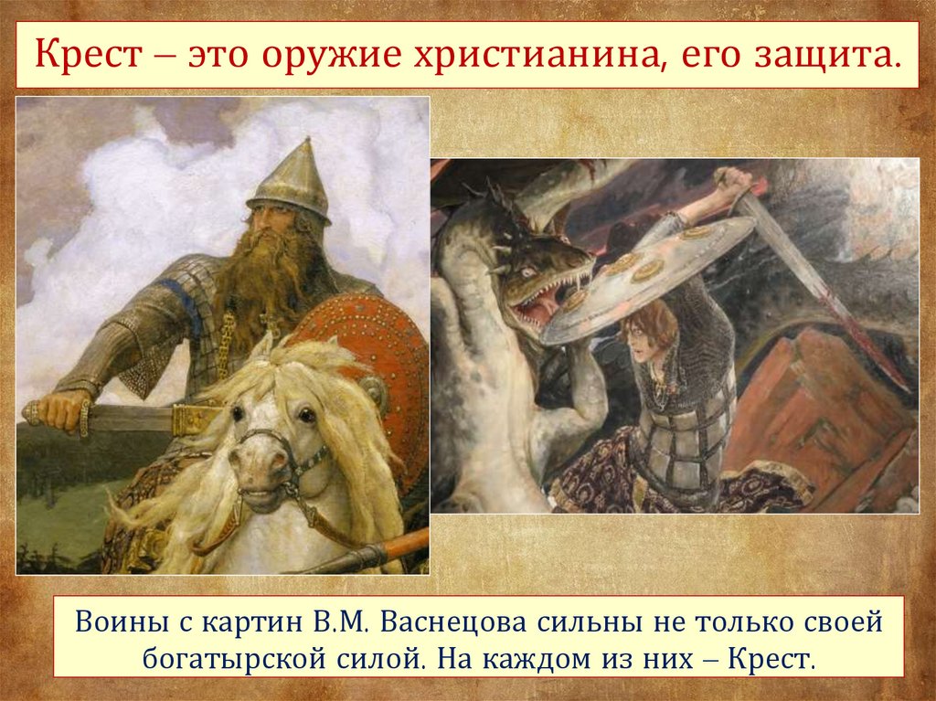 Крест – это оружие христианина, его защита.Воины с картин В.М. Васнецова сильны не только своей