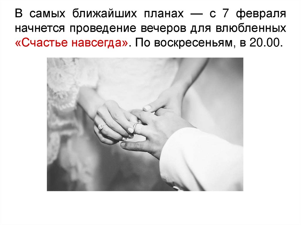 В самых ближайших планах — с 7 февраляначнется проведение вечеров для влюбленных