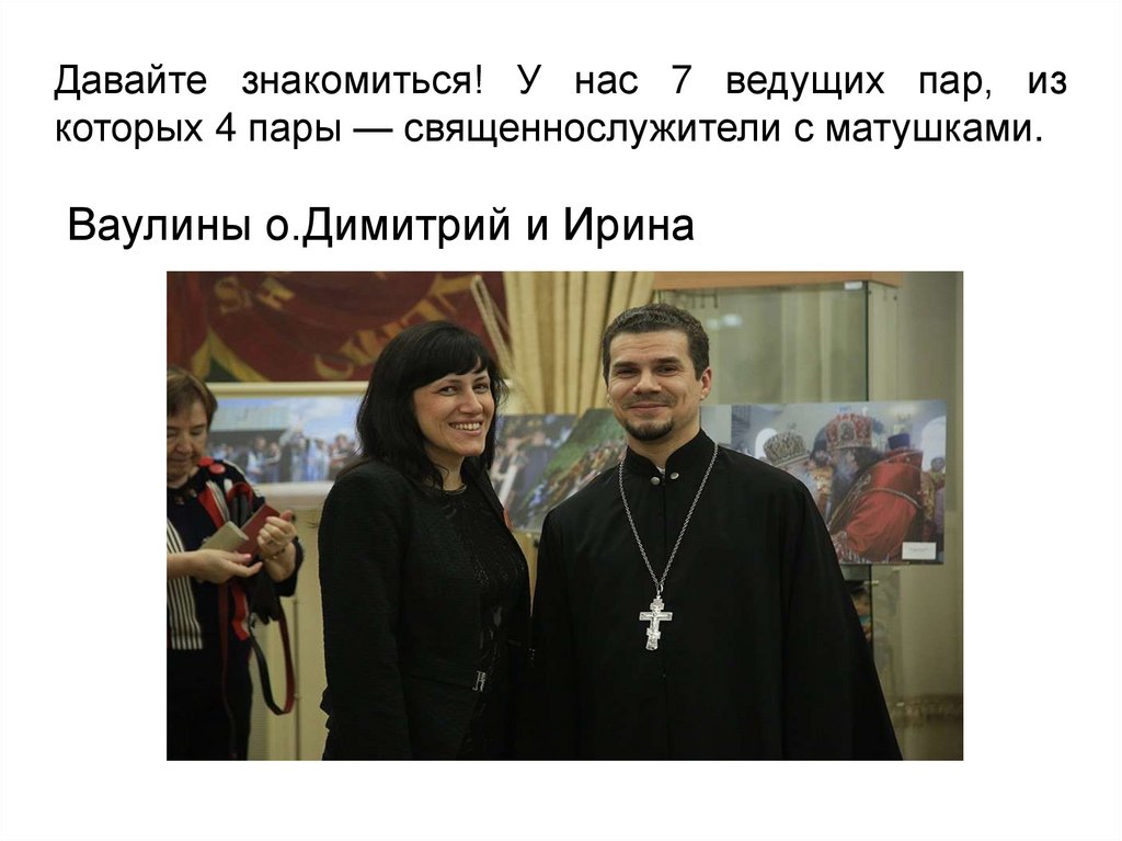 Давайте знакомиться! У нас 7 ведущих пар, изкоторых 4 пары — священнослужители с матушками.