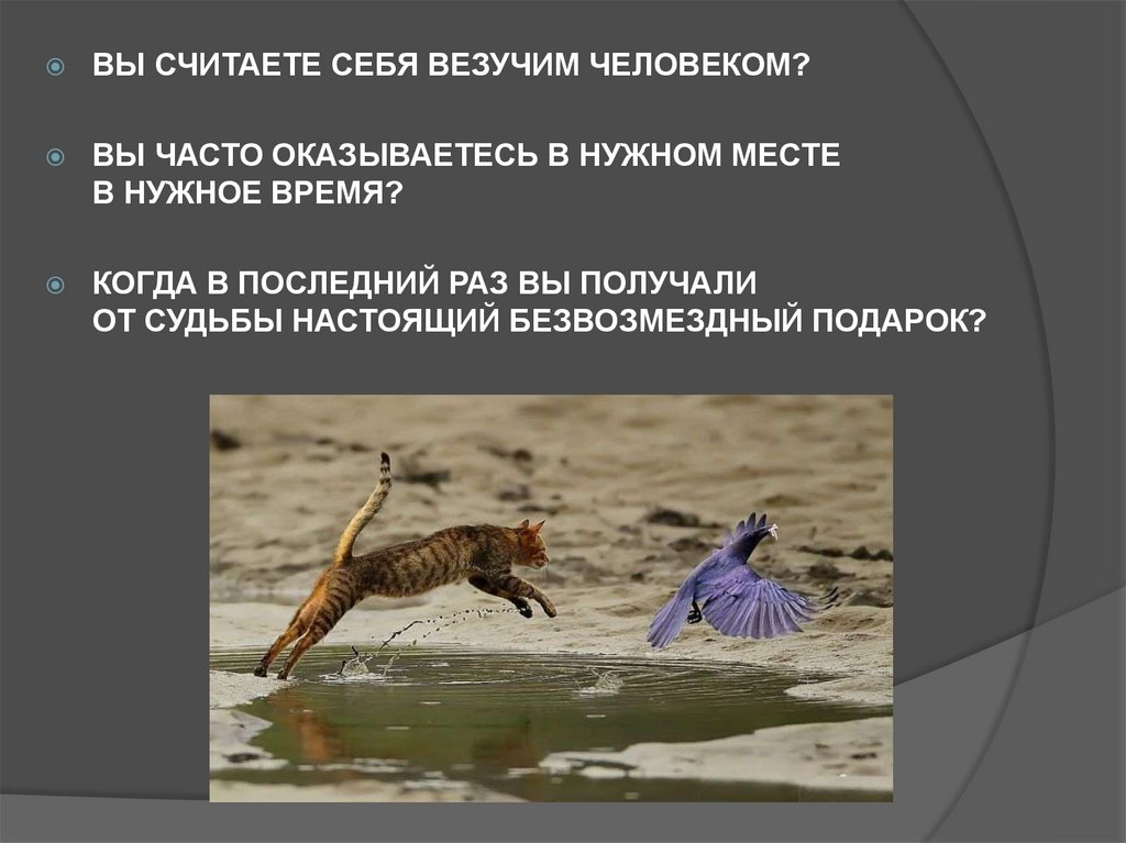 ВЫ СЧИТАЕТЕ СЕБЯ ВЕЗУЧИМ ЧЕЛОВЕКОМ?ВЫ ЧАСТО ОКАЗЫВАЕТЕСЬ В НУЖНОМ МЕСТЕ