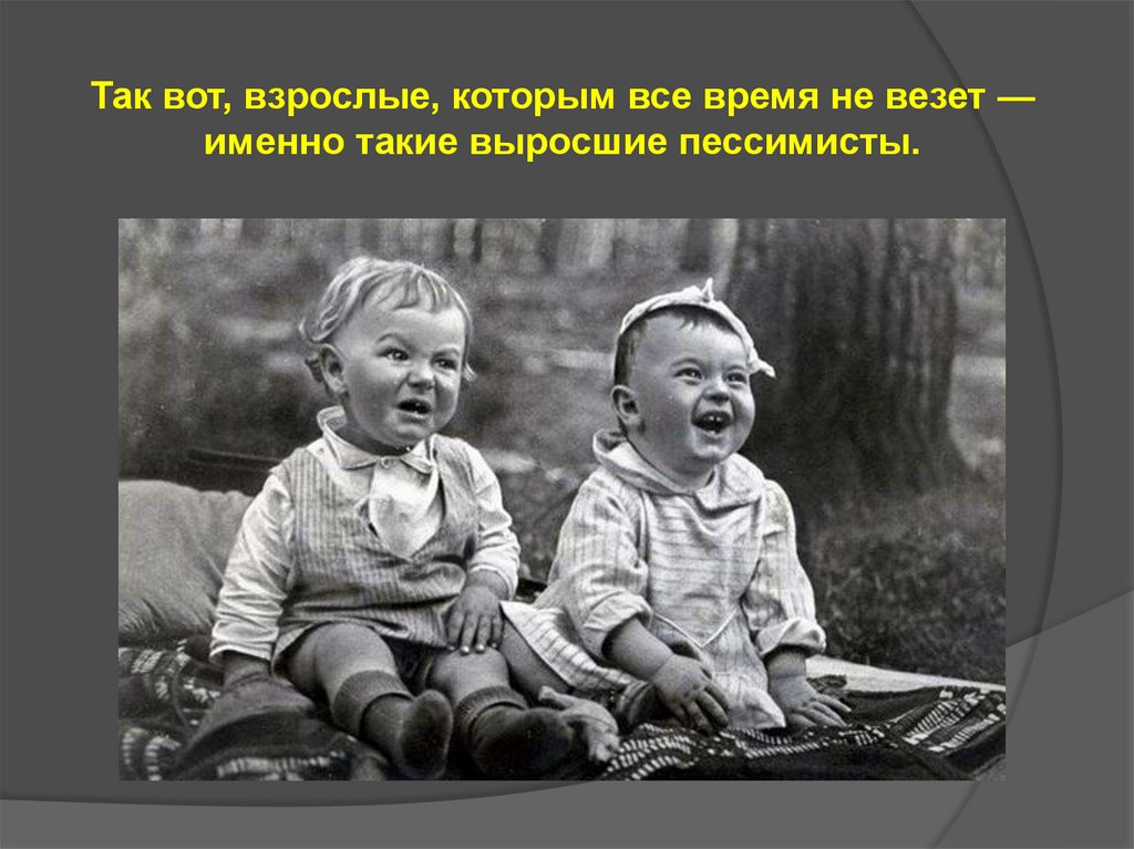 Так вот, взрослые, которым все время не везет —именно такие выросшие пессимисты.