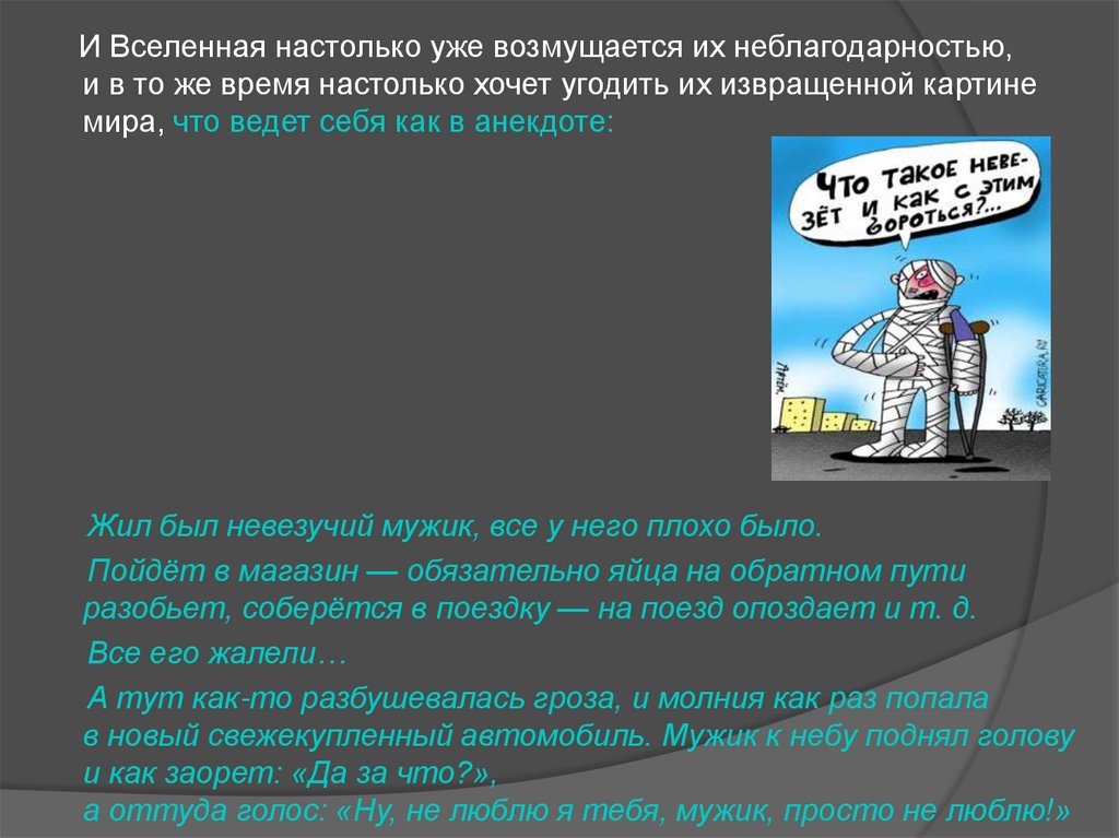 I.Если человеку хронически не везет, что,